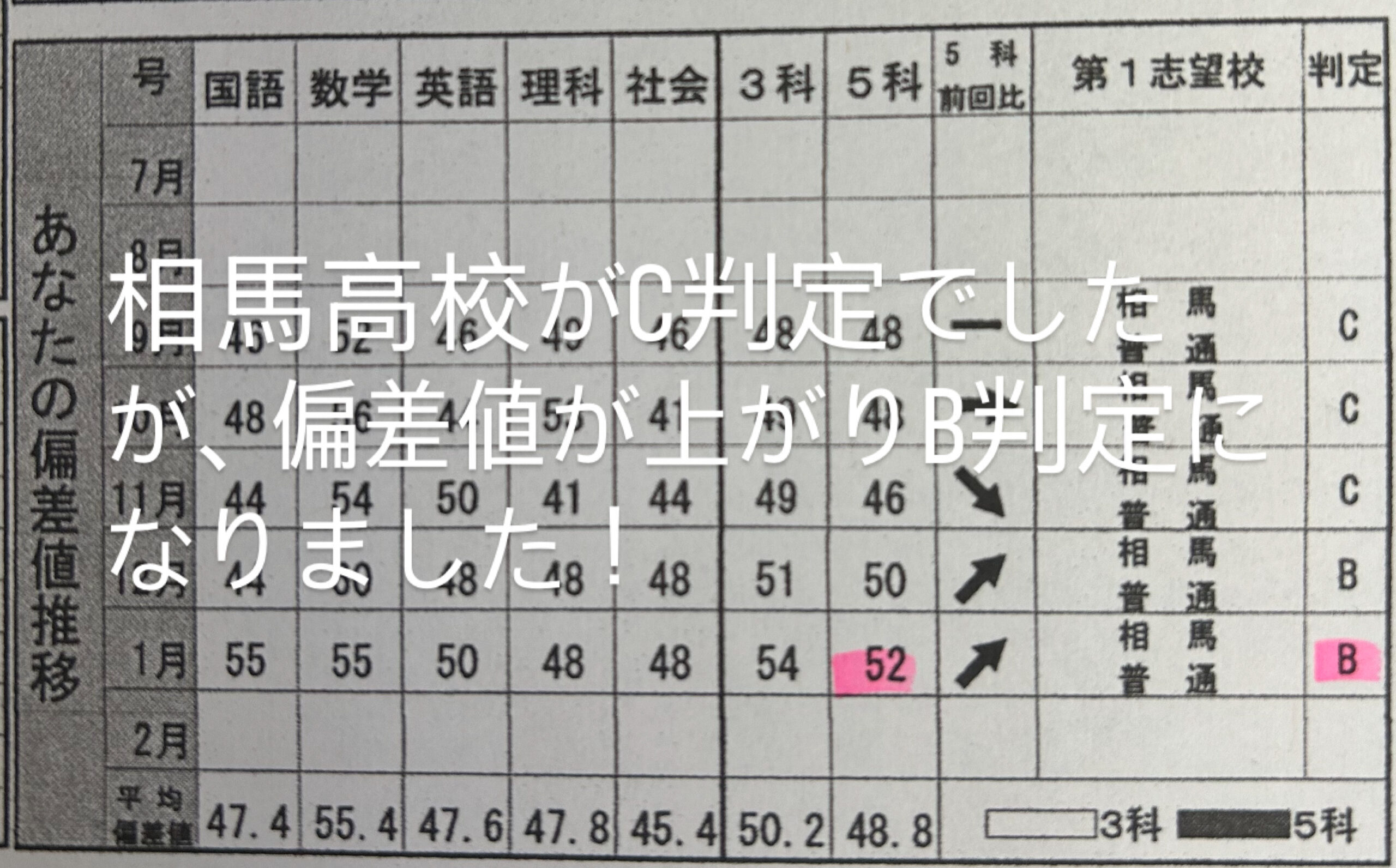 相馬高校C判定がB判定になりました!