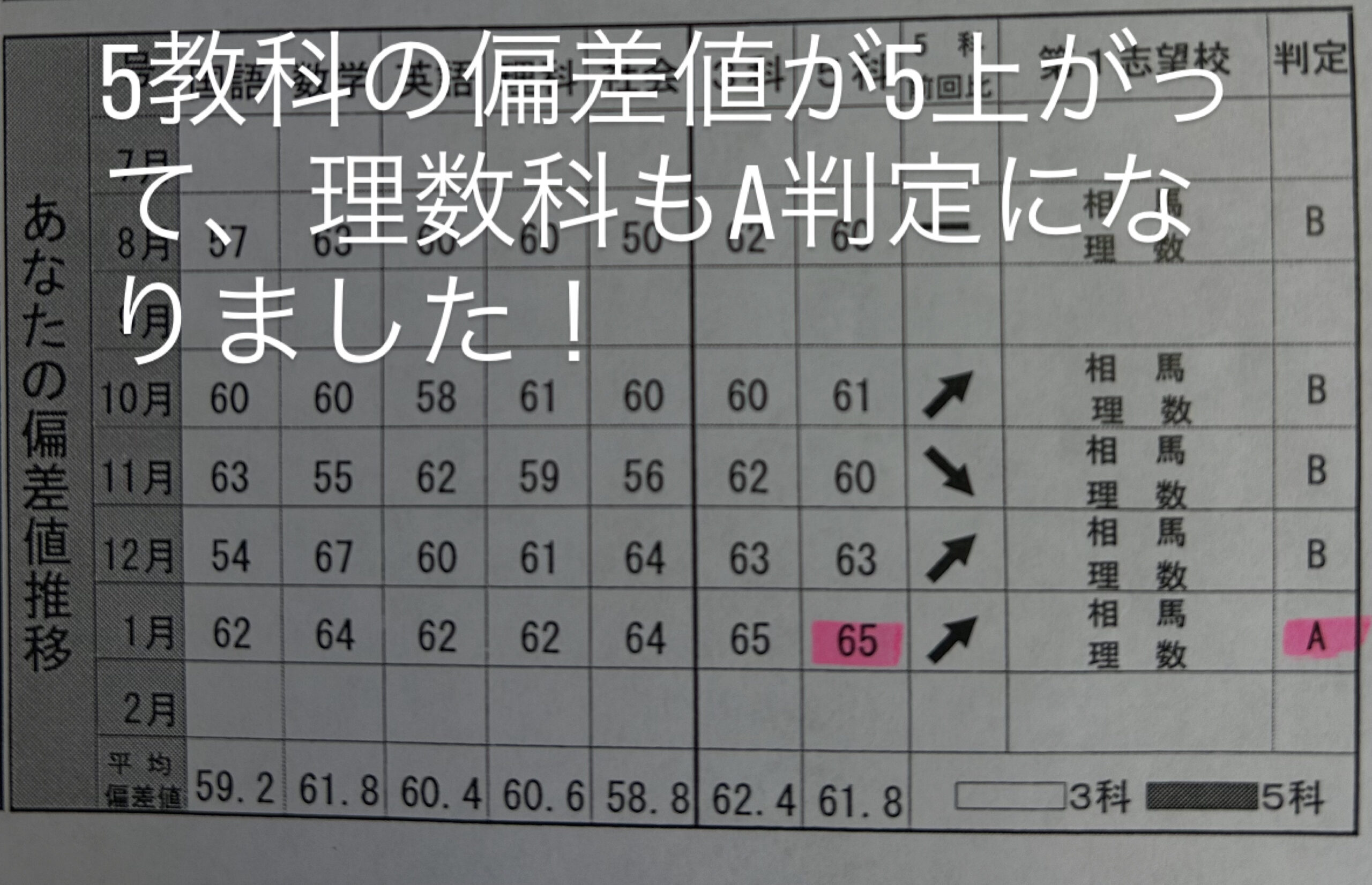 中3 5教科の偏差値が上がりました!